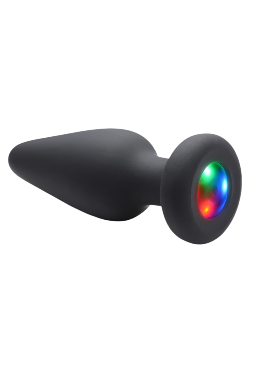Light up the night with this light-up anal plug! Have some fun with your booty play and give your partner a light-show at the same time. This silicone anal plug has an LED light that shines red, green and blue and switches between 3 different light patterns! Find your partner in the dark or play some music that matches the pulsing beat of the LED light-show!