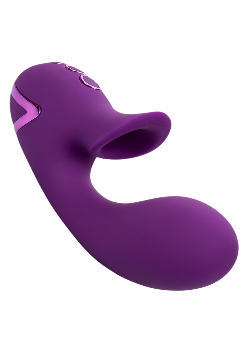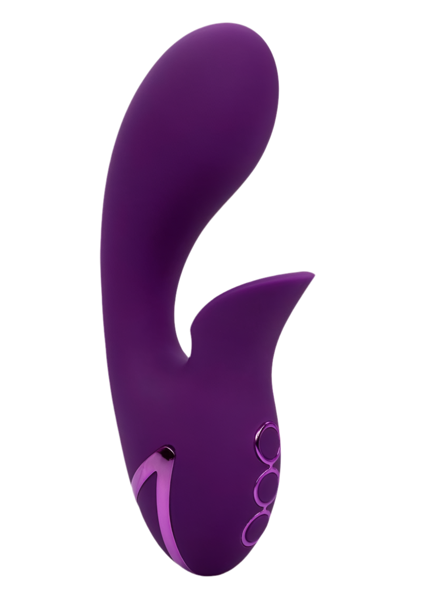 Powerful, compact, vibrating dual stimulator with clitoral suction. 3 speeds of independent vibration in the shaft. 10 functions of independent intimate suction in the stimulator. Dual motors. Body-safe Silicone. State-of-the-art memory chip resumes on last function used. USB rechargeable – charging cord included.
