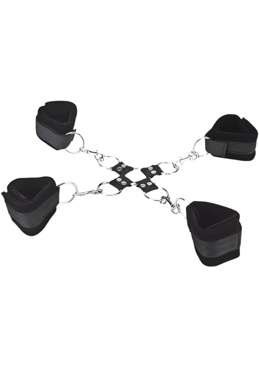 Not for the uninitiated, this industrial-strength hogtie set lets you completely incapacitate your lover and get down to business. Stainless steel hardware and padded Velcro cuffs, because after all, one should be comfortable when hog-tied!