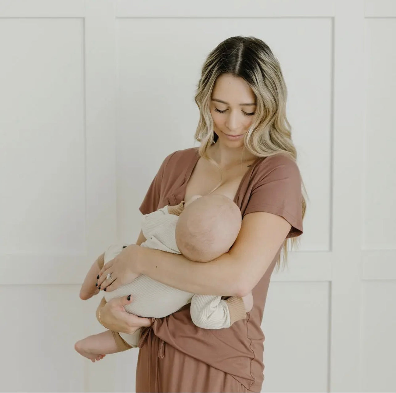 The top features discreet nursing-friendly access, allowing you to feed or pump with ease while staying covered and comfortable. Paired with relaxed-fit pants featuring an elastic waistband that adapts to your changing shape, this set ensures the ultimate fit during pregnancy, postpartum, and beyond. Whether you're lounging at home, chasing little ones, or catching a moment of rest, the Bamboo Lounge Set is your go-to for effortless comfort and timeless design.