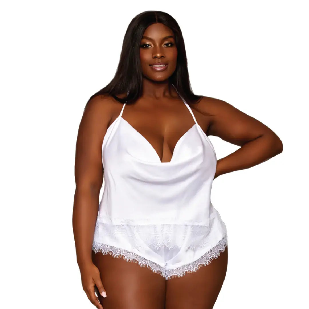 Wild at Heart Diamond is a satin cami & shorts set. Shine bright like a diamond with this matching cami and shorts set. Our exclusive new color, diamond, paired with an alluring open back and sheer lace make this set as sexy as it is comfortable. Slip it on and dazzle like the gem you are.